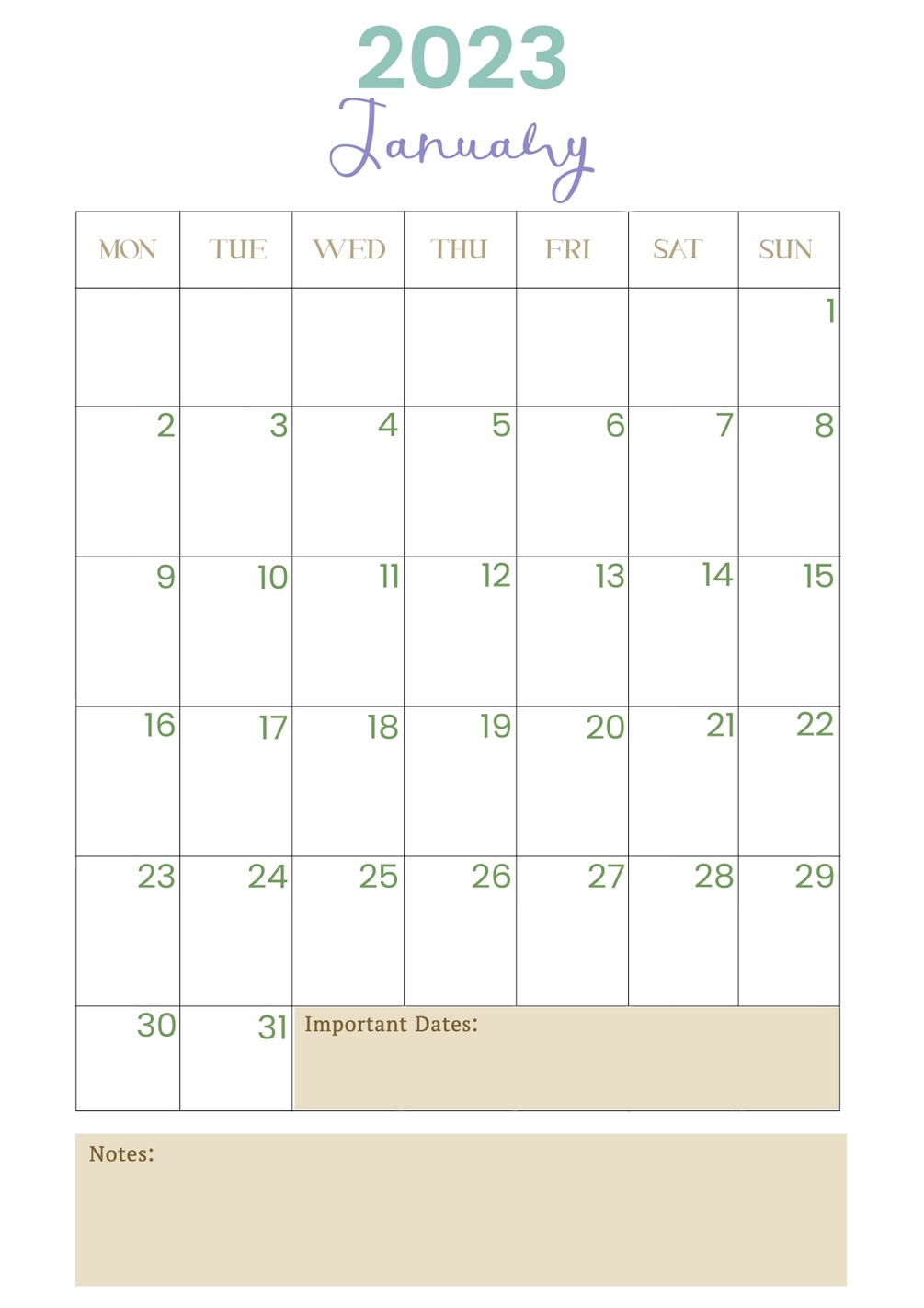 Start the new year right and download our ‘Jan 2023 Calendar’ printables. This calendar can help you organise your month ahead of time. With an exclusive section for notes and details, you can stay on top of your tasks and deadlines!